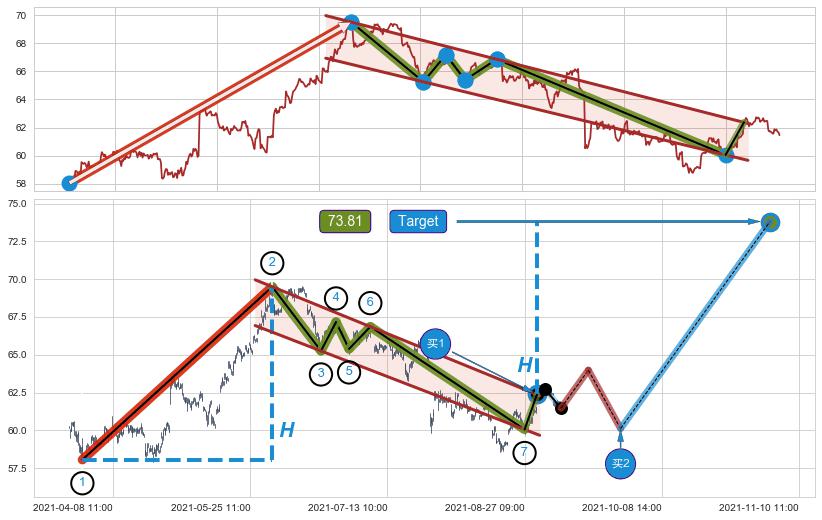➣ 最小中继整理涨幅→𝐇: 11.44 (𝐇旗杆的长度:旗杆起点→顶点)