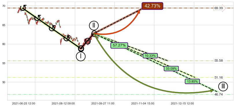 ➣ 大趋势循环浪继续向下概率57.27%