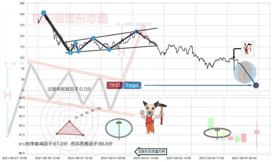 ➢ 【已确认突破】最后价格:93.15与最小【整理】第一目标价格→(09-21:11: 74.63 )相较: 下跌空间【中等】