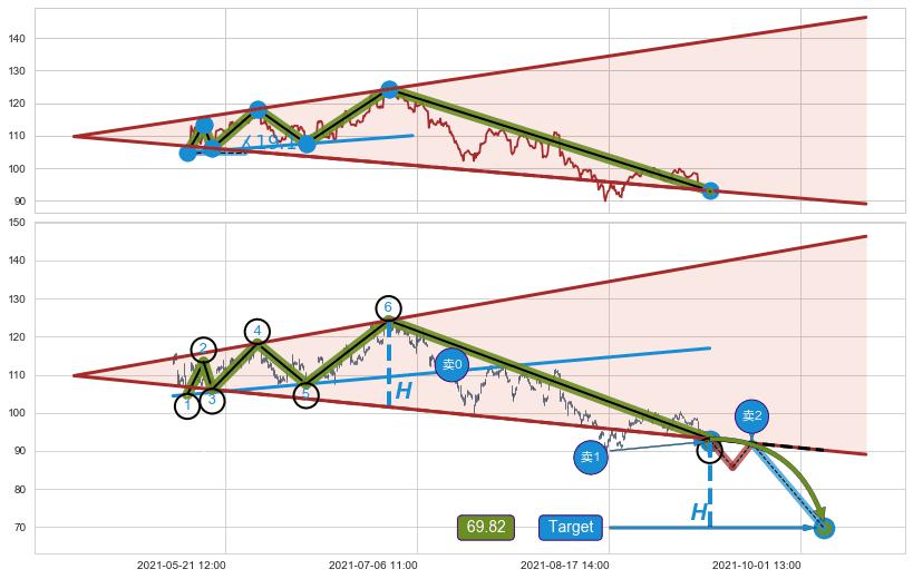 ➢ 升旗形:猜想下跌target达成后 → 上涨 → 机会信号 → 大趋势均值回复