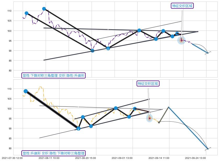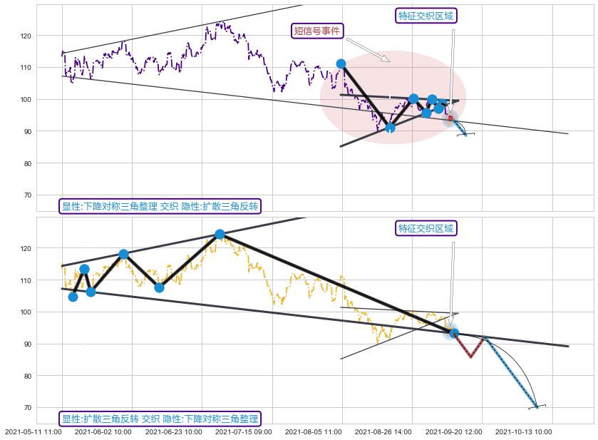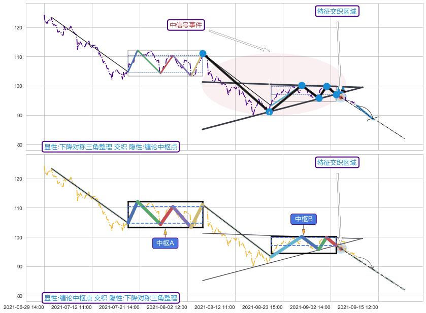 ➢ 下降对称三角整理属【中级别信号事件】缠论中枢点属【长级别信号事件】中长周期组合信号事件,中长事件长度比47.04%