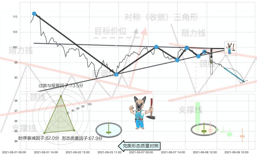 ➢ 【卖1】: 激进型 卖点→(09-08:09: 97.96 )形成突破下降【对称】三角形整理【整理】形态