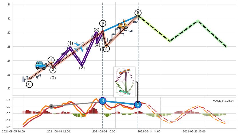 ➣ 波浪理论:猜想达到c点后小反弹终止反转下跌 → 下跌 → 【拐点】临近 → 阶段均值回复结束后继续大周期趋势跟踪