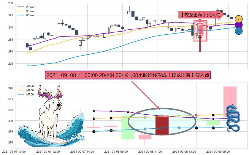 形态多维评估: ⚀ 2021-09-08 11:00:00小时显现 20小时-30小时-60小时均线 【蛟龙出海】买入点 看多信号,后市看涨,买入