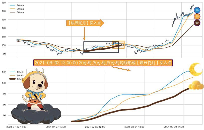 形态多维评估: ⚀ 2021-07-28 09:00:00小时-2021-08-10 13:00:00小时显现 20小时-30小时-60小时均线 【烘云托月】买入点 看多信号,后市看涨,买入