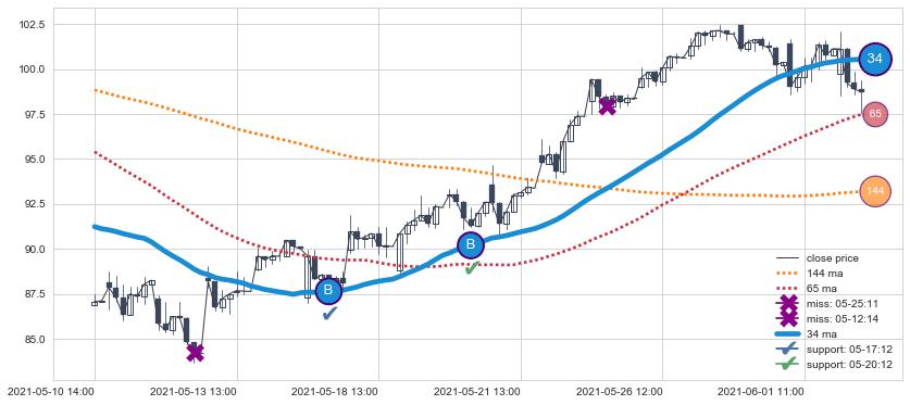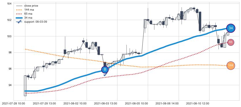 上涨趋势05-10 14:00-06-02 12:00,均线34确认关键支撑2处