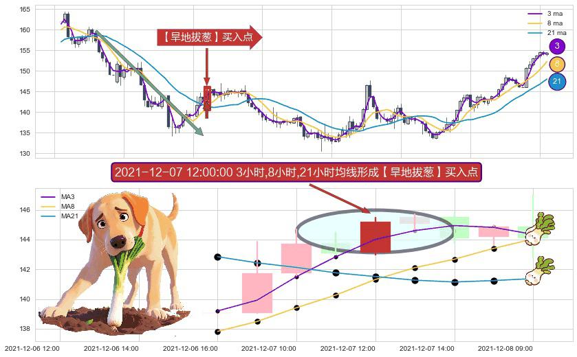 形态多维评估: ⚀ 2021-12-07 12:00:00小时显现 3小时-8小时-21小时均线 【旱地拔葱】买入点 看多信号,后市看涨,买入