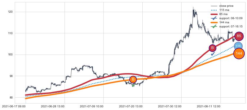 上涨趋势06-17 09:00-08-16 11:00,均线144, 85确认关键支撑2处