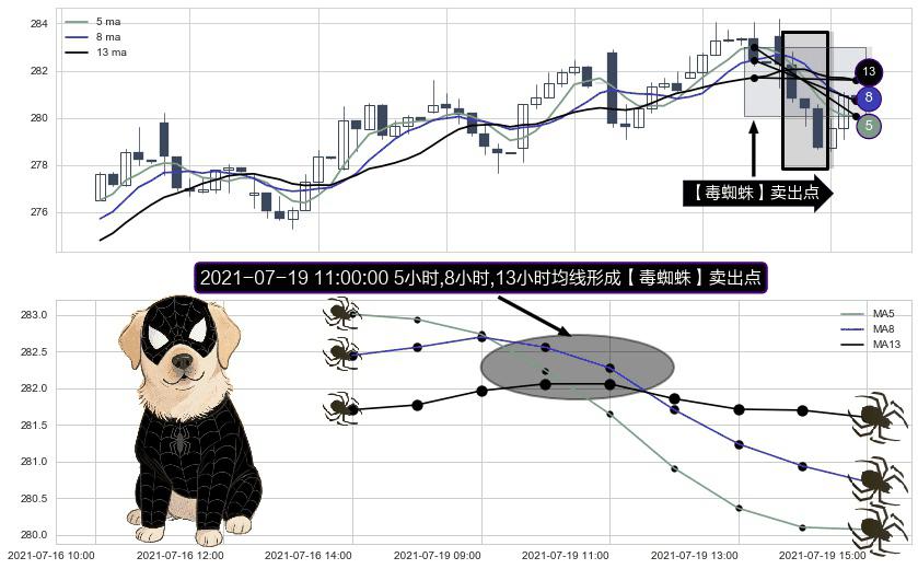 ⚀ 2021-07-19 11:00:00小时显现 5小时-8小时-13小时均线 【毒蜘蛛】卖出点 看空信号,后市看跌,卖出