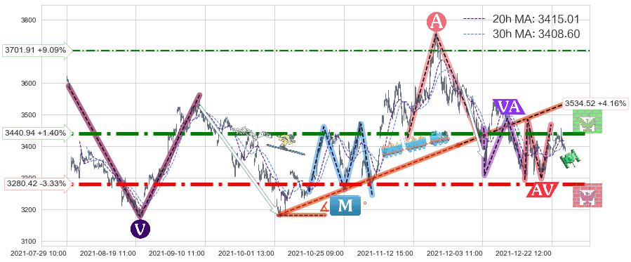♘ 阻力价格位3440.94,可信任强度88.39%,距离最后交易2021-12-27 15:00形成的收盘价格3393.39相差 +1.40%