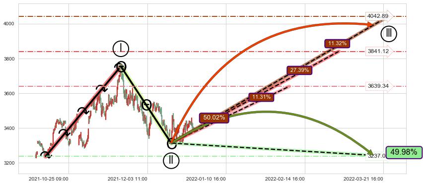 ➣ 循环浪继续向上【平均值】位置(03-01:15, 3841.12),匹配聚类样本比例54.75%, 可能性概率27.39%