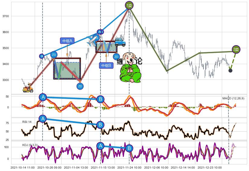 ➢ 【中枢A】:10-21:14-11-02:11,中枢由4笔构成,共50交易小时, ZG=3408.14, ZD=3306.74