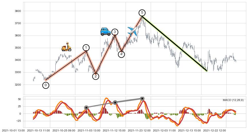 从2021-12-15 12:00至2021-12-22 11:00,共包含39个小时,阶段股价上涨3.75%,阶段股价变动位移路程比: 1 : 5