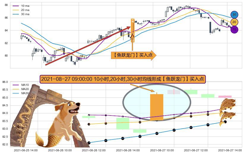 形态多维评估: ⚀ 2021-08-27 09:00:00小时显现 10小时-20小时-30小时均线 【鱼跃龙门】买入点 看多信号,后市看涨,买入