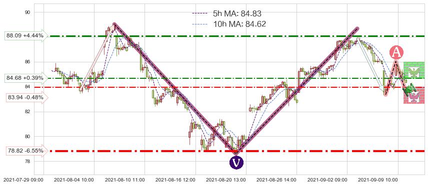 ♘ 阻力价格位88.09,可信任强度60.54%,距离最后交易2021-09-09 14:00形成的收盘价格84.35相差 +4.44%