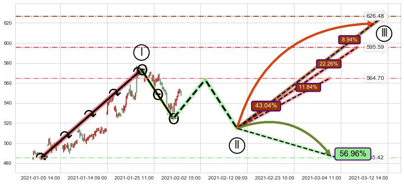 ➣ 循环浪继续向上【平均值】位置(03-08:14, 595.59),匹配聚类样本比例51.72%, 可能性概率22.26%