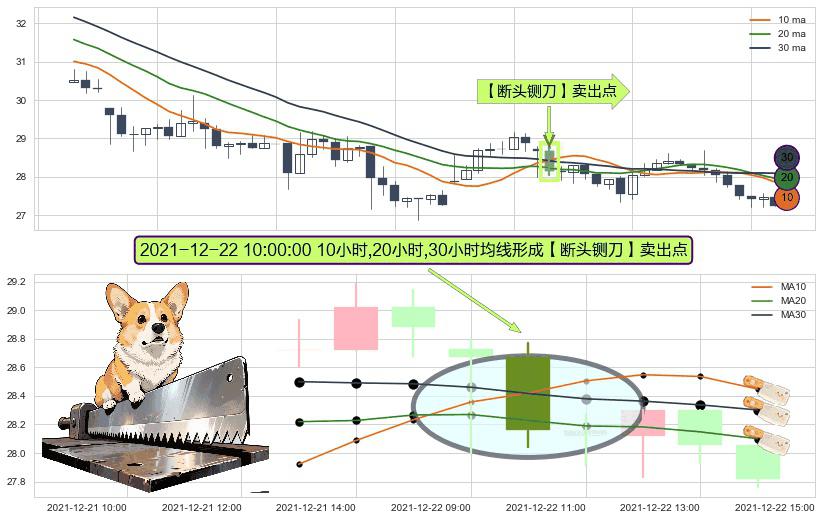 形态多维评估: ⚀ 2021-12-22 10:00:00小时显现 10小时-20小时-30小时均线 【断头铡刀】卖出点 看空信号,后市看跌,卖出