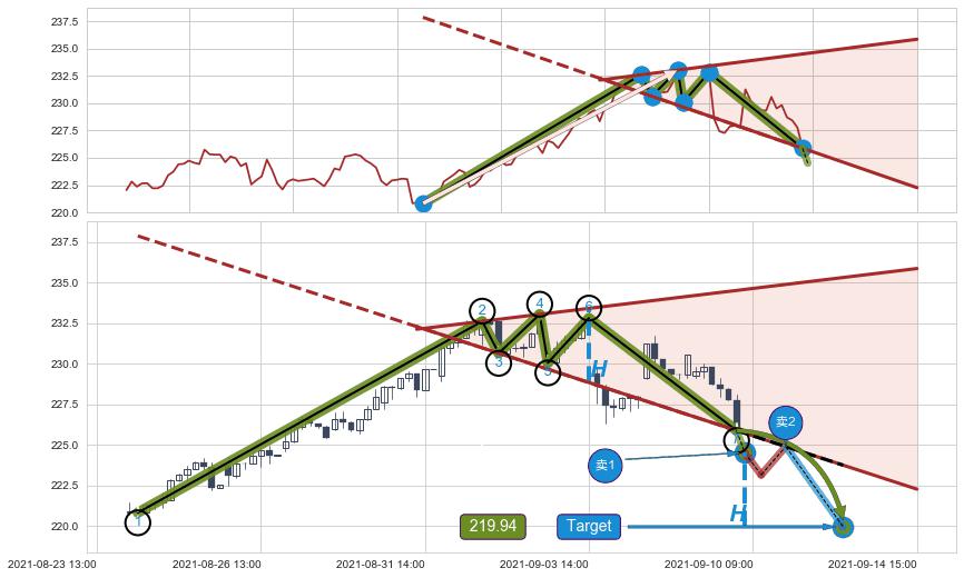➣ AI预测: 假定反转启动后, 第❸目标位置(09-29:14, 233.05)