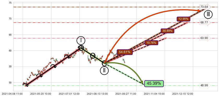 ➢ 循环浪继续向上【最低】位置(11-08:11, 63.90),匹配聚类样本比例19.71%, 可能性概率10.76%