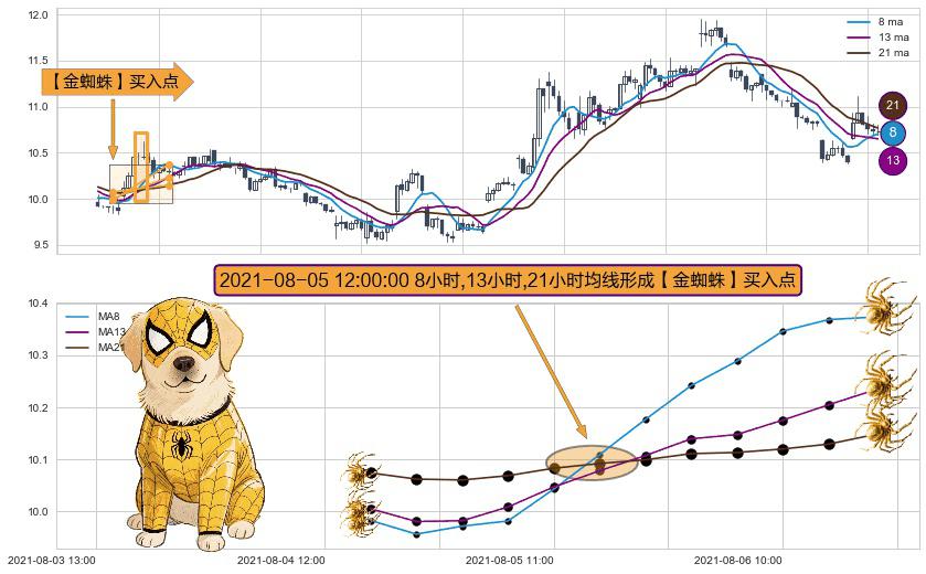 ⚀ 2021-08-05 12:00:00小时显现 8小时-13小时-21小时均线 【金蜘蛛】买入点 看多信号,后市看涨,买入