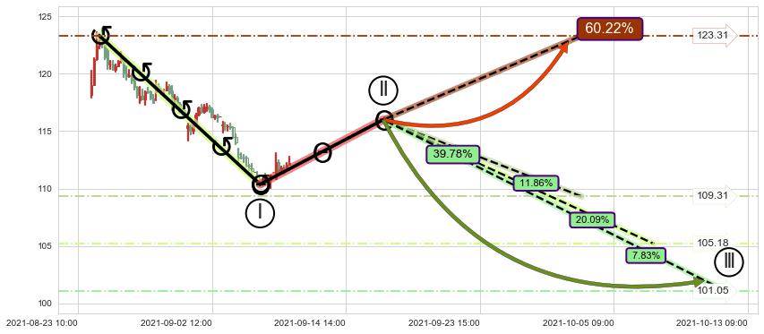 ➣ 循环浪继续向下【平均值】位置(10-07:10, 105.18),匹配聚类样本比例50.51%, 可能性概率20.09%