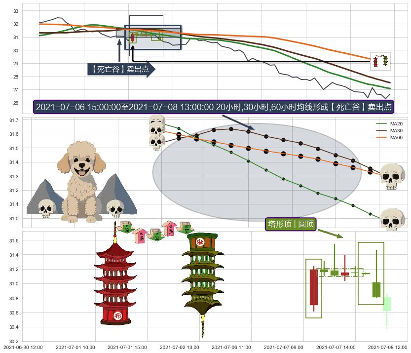 | 3 🅚:【死亡谷】卖出点 ➕ 📐:扩散三角反转下行突破支撑位破位, 猜想持续下沉下跌,被突破的支撑位已变为阻力位 ☞ 看空信号 ⇥ 【均线】交织【图形】⇥ 综合量化分数: 43 | > |