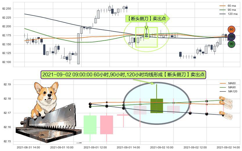 形态多维评估: ⚀ 2021-09-02 09:00:00小时显现 60小时-90小时-120小时均线 【断头铡刀】卖出点 看空信号,后市看跌,卖出