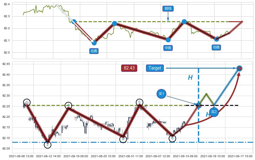 ➢ 图示②④⑥三个波谷均在 82.25 附近成功获得【支撑】→反弹上涨