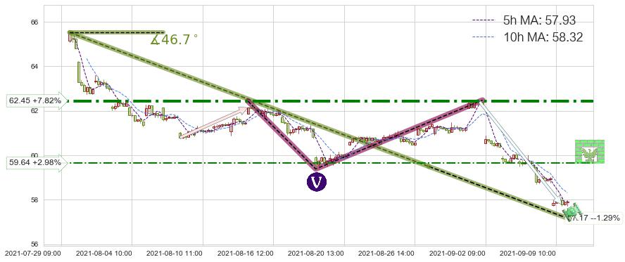 ♘ 阻力价格位59.64,可信任强度38.07%,距离最后交易2021-09-09 14:00形成的收盘价格57.92相差 +2.98%