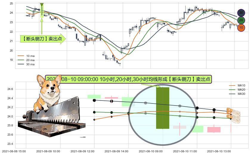 形态多维评估: ⚀ 2021-08-10 09:00:00小时显现 10小时-20小时-30小时均线 【断头铡刀】卖出点 看空信号,后市看跌,卖出