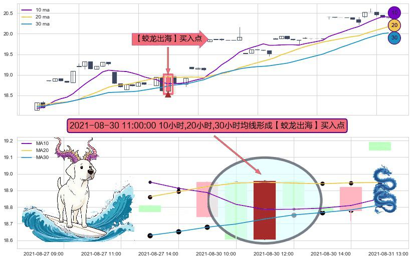 ⚀ 2021-08-30 11:00:00小时显现 10小时-20小时-30小时均线 【蛟龙出海】买入点 看多信号,后市看涨,买入