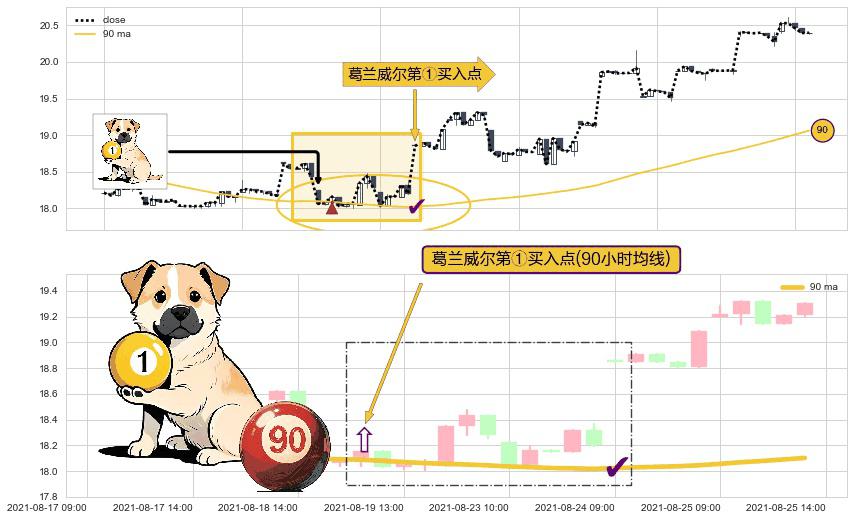 ⚀ 2021-08-19 11:00:00-小时显现 葛兰威尔均线 90小时均线 第买①入点 走势反转见底信号,后市看涨,买进信号
