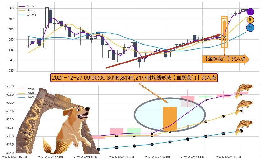 形态多维评估: ⚀ 2021-12-27 09:00:00小时显现 3小时-8小时-21小时均线 【鱼跃龙门】买入点 看多信号,后市看涨,买入
