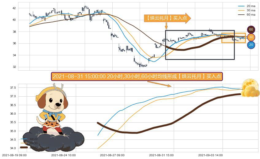形态多维评估: ⚀ 2021-08-25 12:00:00小时-2021-09-08 10:00:00小时显现 20小时-30小时-60小时均线 【烘云托月】买入点 看多信号,后市看涨,买入