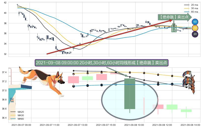 形态多维评估: ⚀ 2021-09-08 09:00:00小时显现 20小时-30小时-60小时均线 【绝命跳】卖出点 看空信号,后市看跌,卖出
