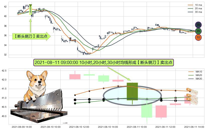 形态多维评估: ⚀ 2021-08-11 09:00:00小时显现 10小时-20小时-30小时均线 【断头铡刀】卖出点 看空信号,后市看跌,卖出