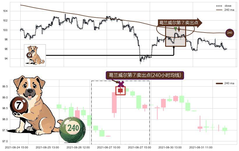 形态多维评估: ⚀ 2021-08-27 10:00:00-小时显现 葛兰威尔均线 240小时均线 第⑦卖出点 下降趋势的中继信号,后市看跌,卖出信号