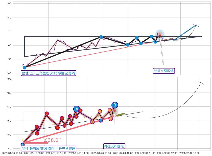 从2020-12-22 12:00至2020-12-24 10:00,共包含14个小时,阶段股价上涨5.79%,阶段股价变动位移路程比: 1 : 1.8