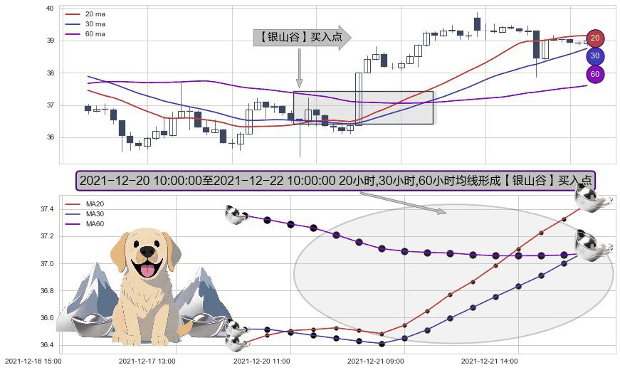 形态多维评估: ⚀ 2021-12-20 11:00:00-小时至2021-12-22 10:00:00-小时显现 20小时-30小时-60小时均线 【银山谷】买入点 看多信号,后市看涨,买入