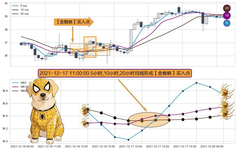 形态多维评估: ⚀ 2021-12-17 11:00:00小时显现 5小时-10小时-20小时均线 【金蜘蛛】买入点 看多信号,后市看涨,买入