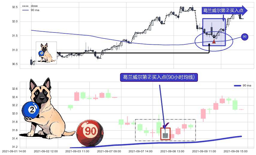⚀ 2021-09-08 10:00:00-小时显现 葛兰威尔均线 90小时均线 第②买入点 上升趋势的中继信号,后市看涨,买进信号