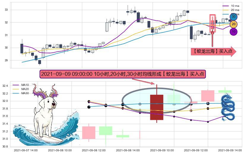 形态多维评估: ⚀ 2021-09-09 09:00:00小时显现 10小时-20小时-30小时均线 【蛟龙出海】买入点 看多信号,后市看涨,买入