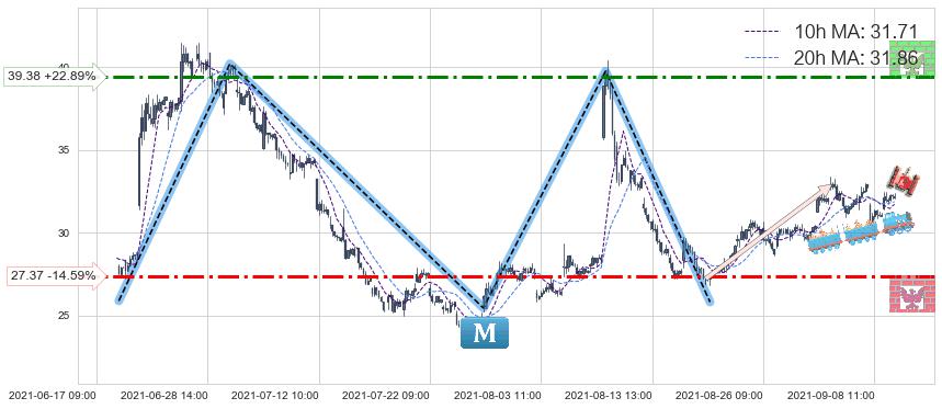 ♘ 阻力价格位39.38,可信任强度57.18%,距离最后交易2021-09-09 14:00形成的收盘价格32.05相差 +22.89%