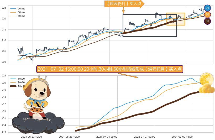 ⚀ 2021-06-25 15:00:00小时-2021-07-12 14:00:00小时显现 20小时-30小时-60小时均线 【烘云托月】买入点 看多信号,后市看涨,买入