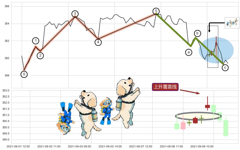 | 3 🅚:上升覆盖线 ➕ 🌊:波浪理论猜想下跌浪5已形成,猜想后续形成abc反弹上涨(均值回复) ☞ 看多信号 ⇥ 【🅚线】交织【图形】⇥ 综合量化分数: 54 | > |