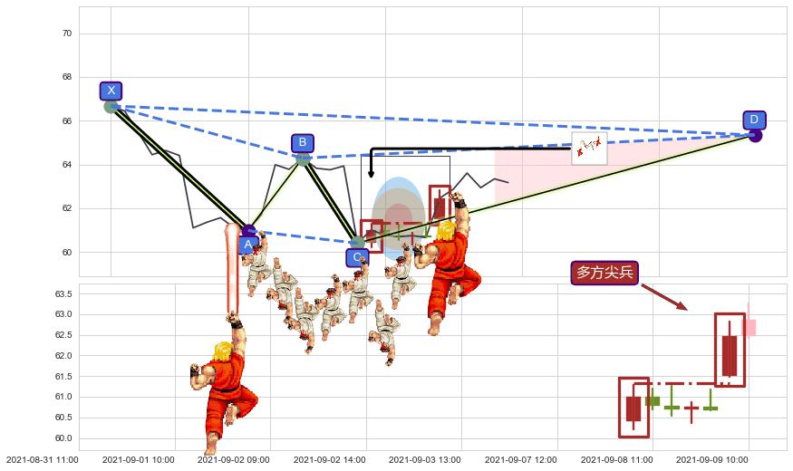 ➣ D点拟合预测价格65.35,距离最后交易收盘价格63.17相差 +3.44%