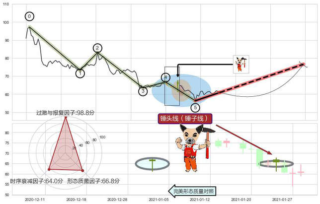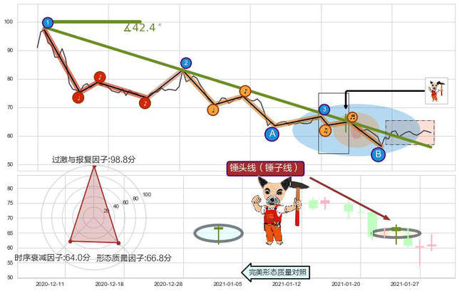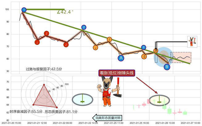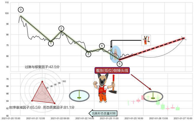 ➢ 🕰 价格走势在2021-01-25 00:00:00至2021-01-25 00:00:00期间形成锤头线(锤子线),残存影响值:6.47