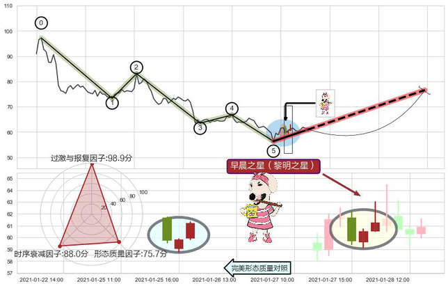 ➢ 早晨之星(黎明之星) 🔜 波浪理论下跌浪:浪5反弹拐点 综合量化分数:55.66 【偏多】