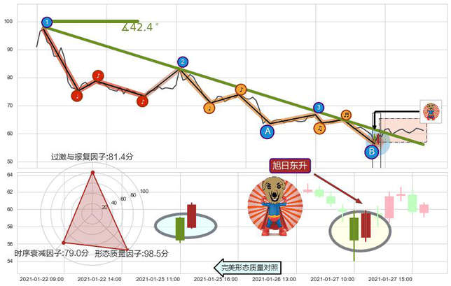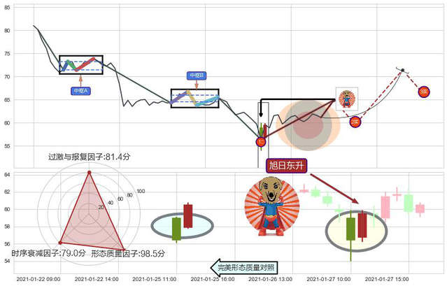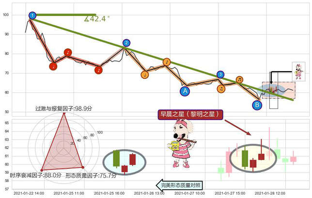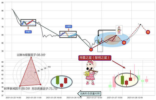 ➢ 🕰 价格走势在2021-01-27 15:00:00至2021-01-28 09:00:00期间形成早晨之星(黎明之星),残存影响值:7.60