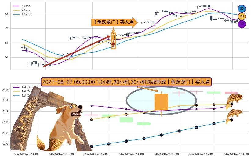 形态多维评估: ⚀ 2021-08-27 09:00:00小时显现 10小时-20小时-30小时均线 【鱼跃龙门】买入点 看多信号,后市看涨,买入